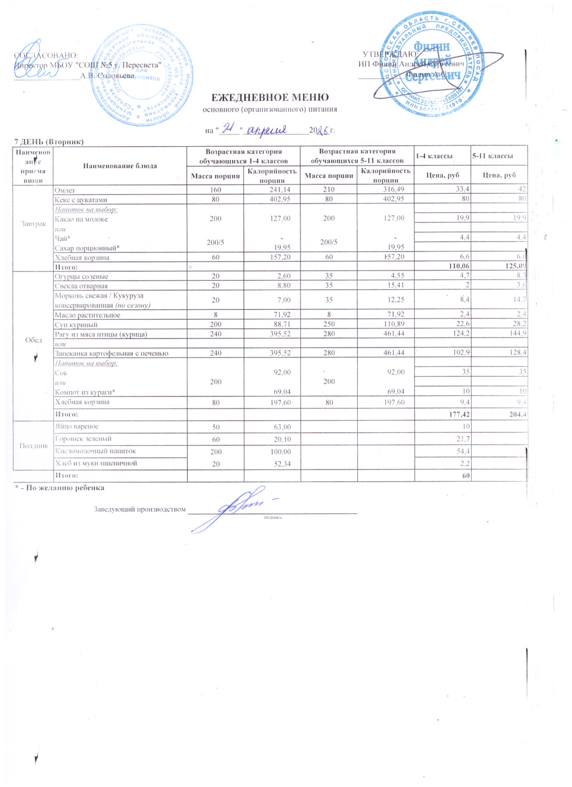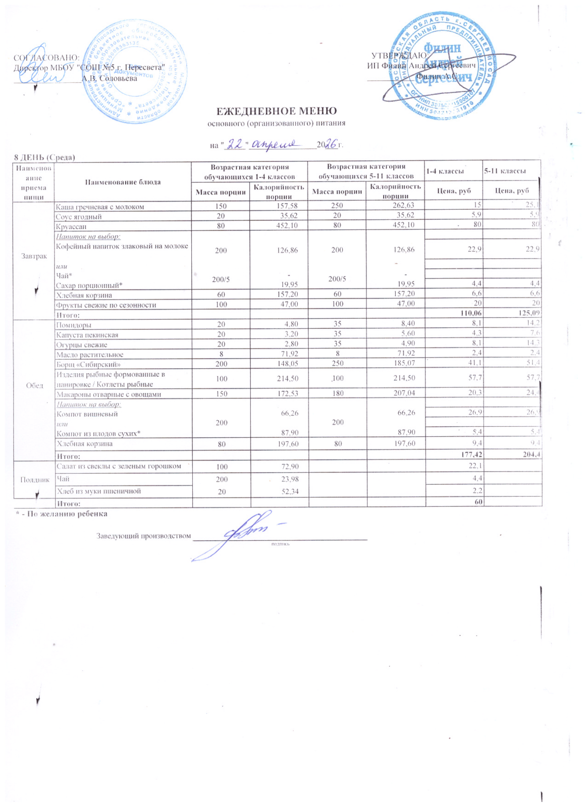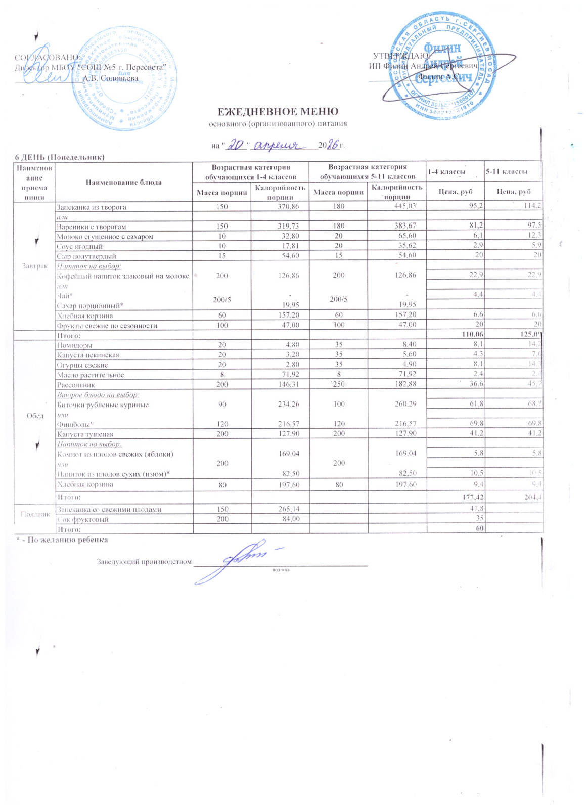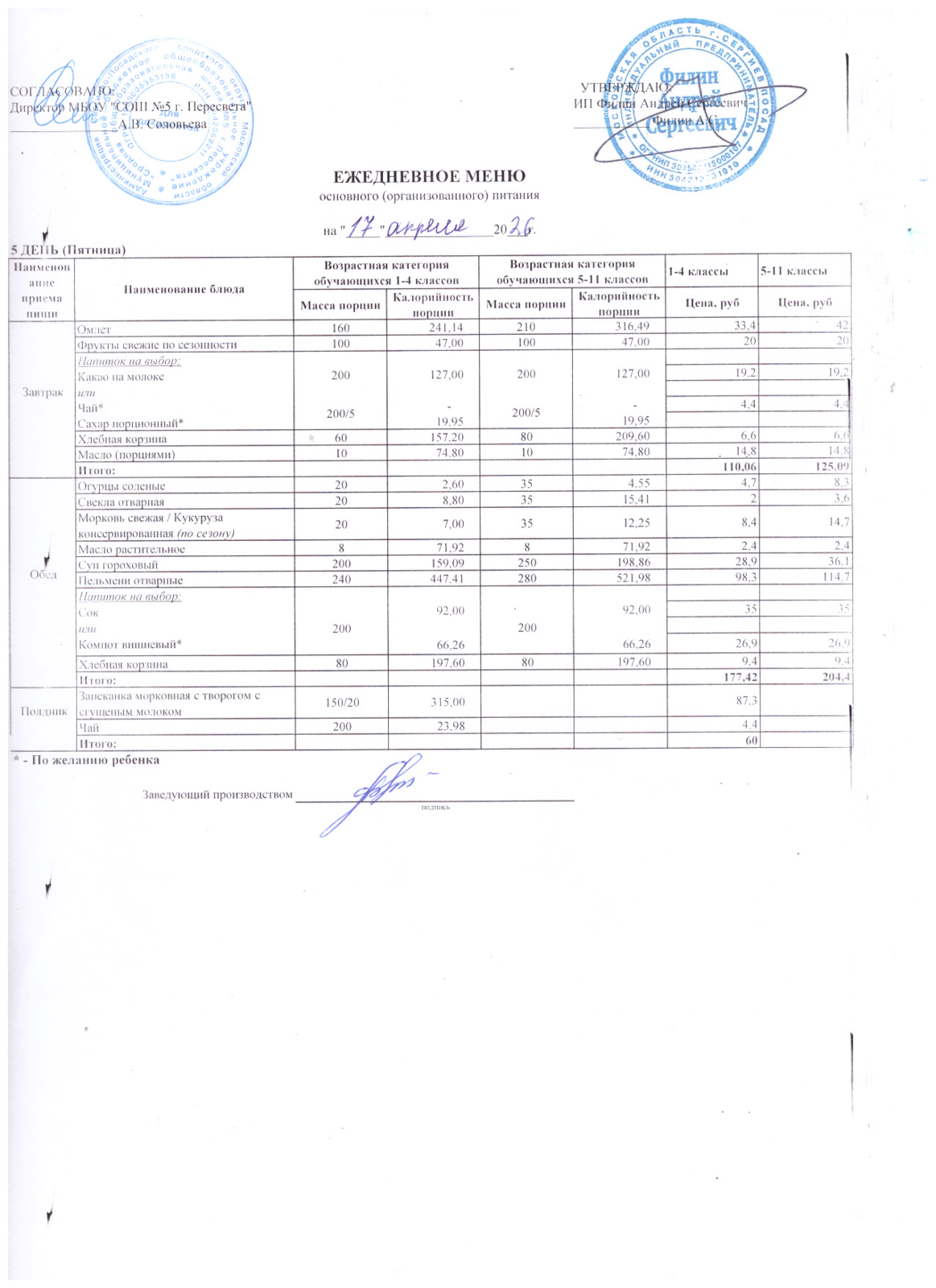 - Организатор питания, получивший право на организацию питания детей в школе в результате конкурсных процедур в соответствии с федеральным законом №44-ФЗ - ИП Филин Андрей Сергеевич +7 903 750 14 41