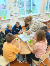 С учениками начальной школы провела занятия библиотекарь Окользина М. В. Для самых юных читателей, учеников 1 класса, был организован настоящий праздник 🎉 — День рождения буквы А или Посвящение в читатели.